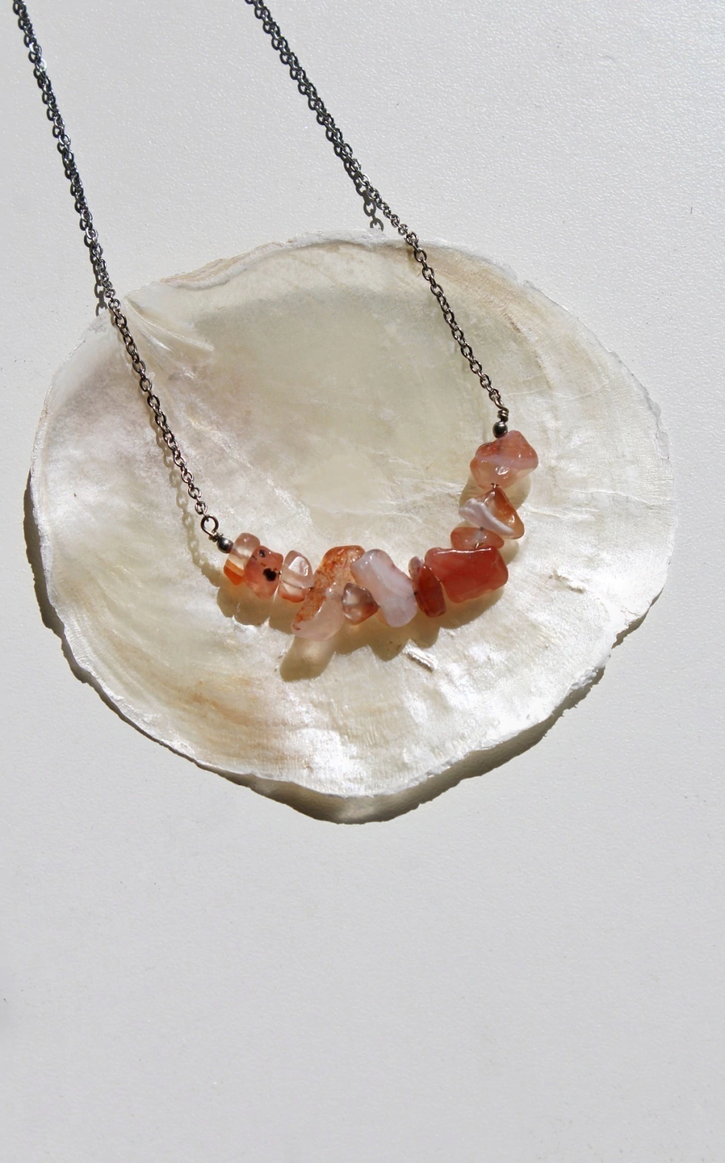 Hecho a mano por cristales de Cornalina, bolitas de acero quirúrgico y cadena de acero quirúrgico.